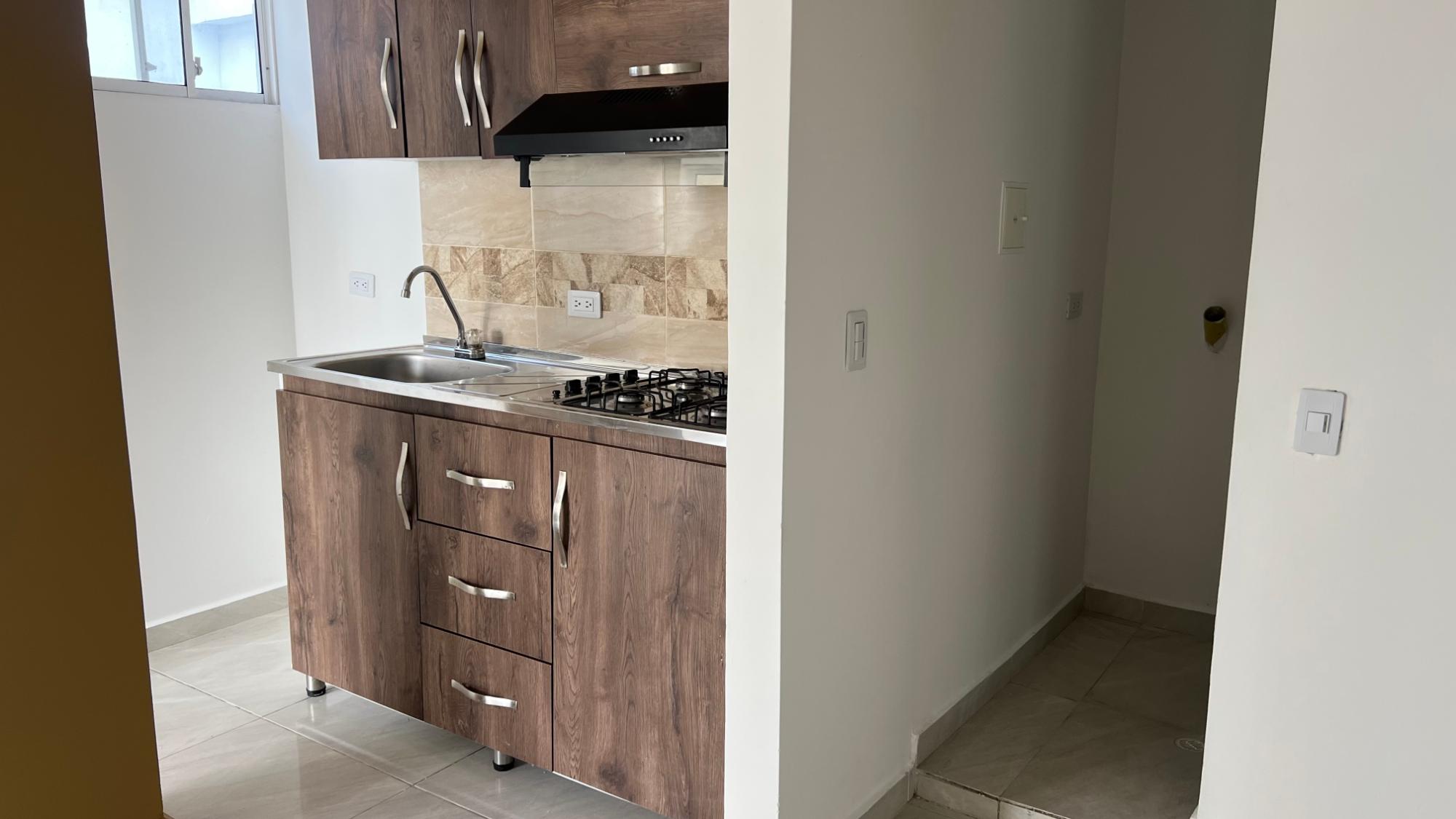 Apartamento dividido en dos apartamentos independientes, cada uno consta de dos habitaciones, la principal con baño. Sala comedor, baño auxiliar. Cocina y zona de ropas. Parqueadero para moto. Uno se encuentra rentando y el otro esta desocupado.