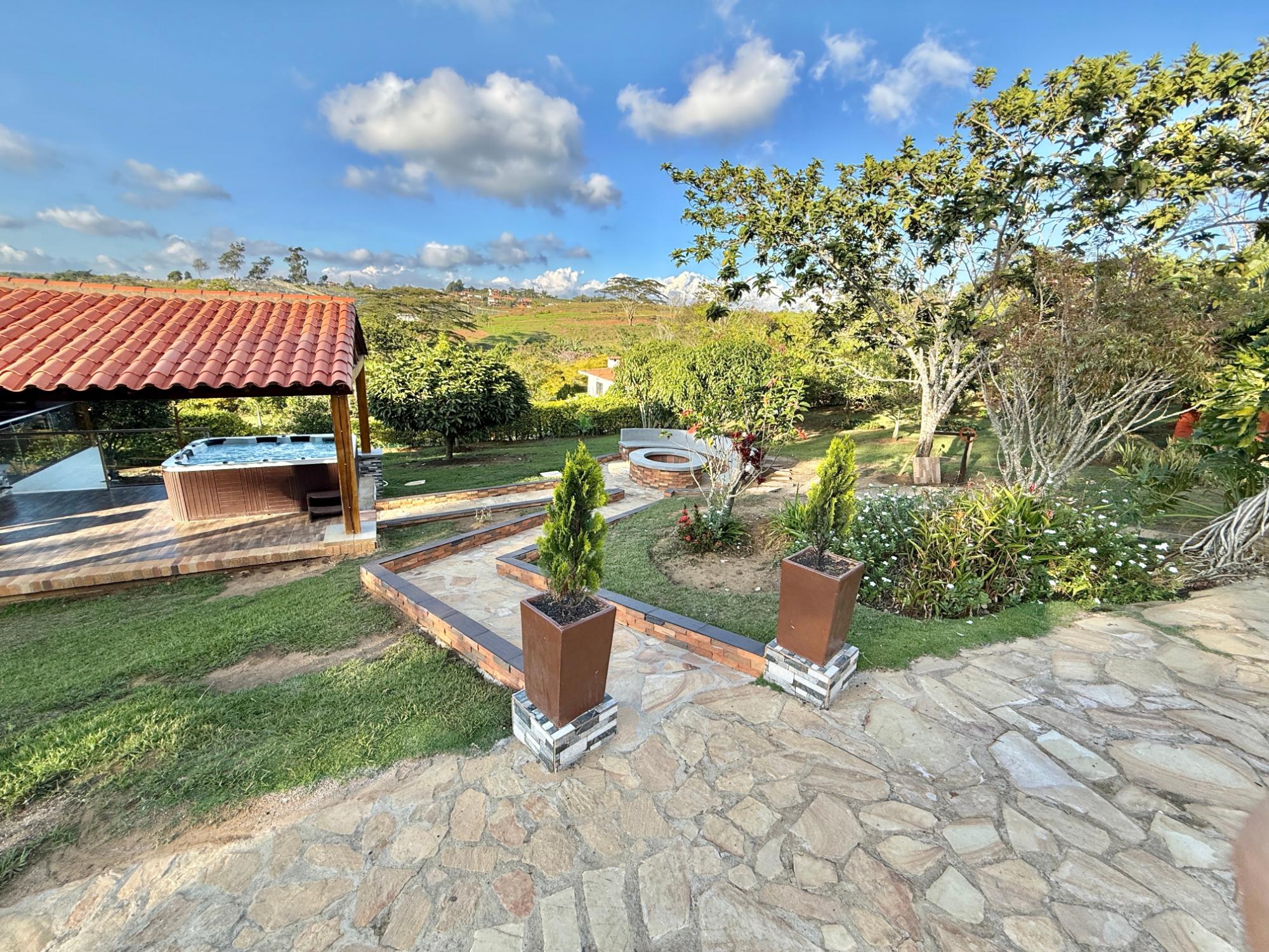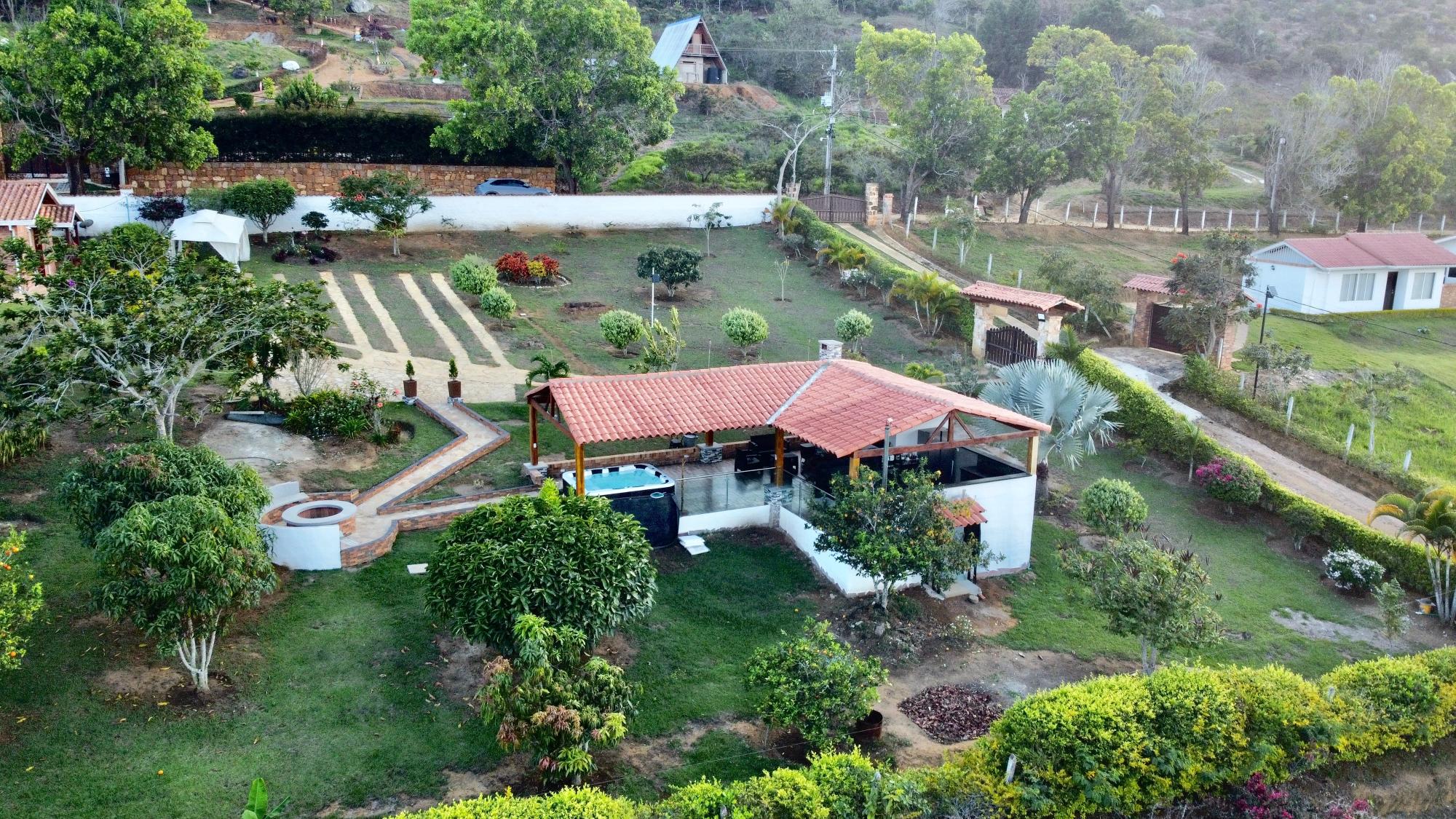 Linda Villa con una casa de 3 alcobas en la parte alta que se conserva muy bien, amplio parqueadero para vehículos, con algunos arboles frutales y con la construcción reciente de zona de fogata, un super Kiosko para disfrutar de reuniones familiares con jacuzzi, gran estar con chimenea, un amplio baño con servicio de agua caliente, barra americana con sus respectivas sillas y gran cocina con horno de leña incorporado, asador a gas, fogón, gabinetes para almacenamiento y nevera.