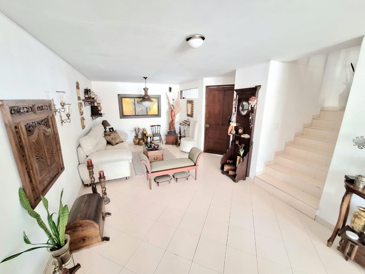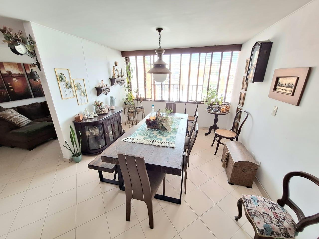 Al ingreso del apartamento esta la sala comedor amplia del apartamento con vista exterior, hacia mano izquierda esta el hall de t.v del apartamento, y por el pasillo un baño de visitas sin ducha, mas adelante esta la cocina la cual es integral, al respaldo se encuentra la zona de ropas y hacia el otro extremo un mueble en madera para almacenar elementos y un baño de servicio completo con ducha. en el segundo piso del apartamento hay un hall de estudio, una habitación auxiliar con closet, otra habitación auxiliar con closet y baño, y la habitación principal amplia con vestier y baño. El parqueadero del apto es doble pero con servidumbre
